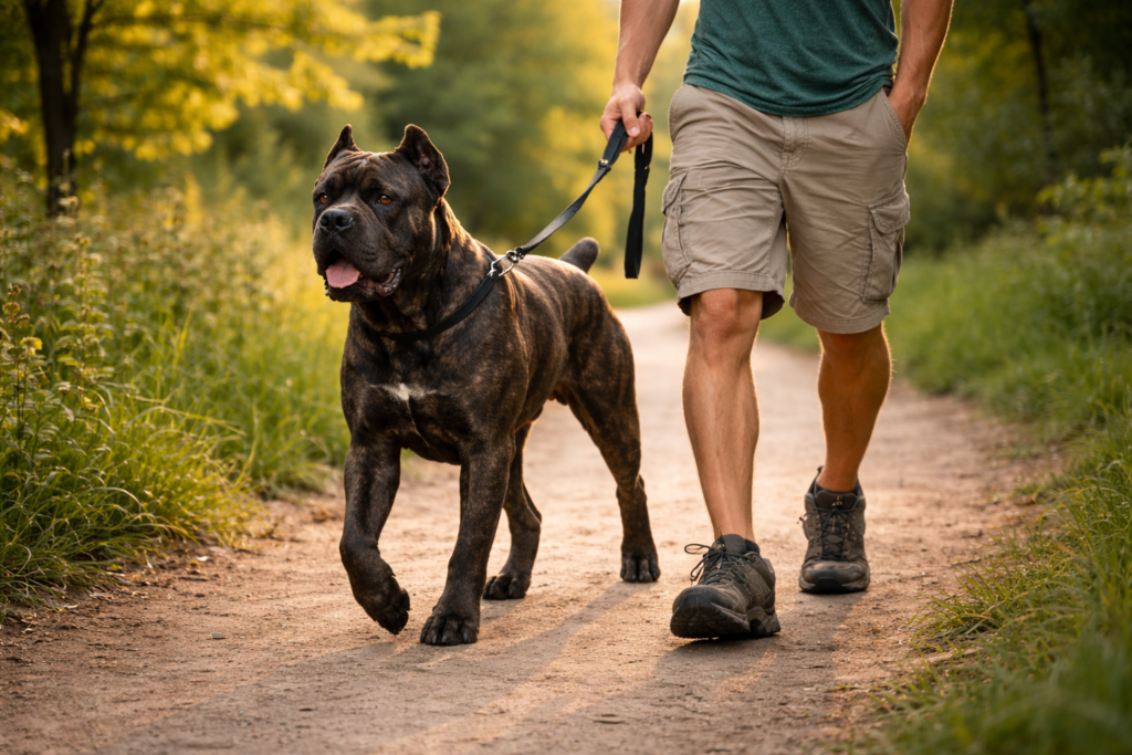 Cane Corsos require substantial exercise to maintain their physical condition and mental balance. Plan for at least 60-90 minutes of activity daily, split across multiple sessions. Morning and evening walks of 30-45 minutes each work well for most families.